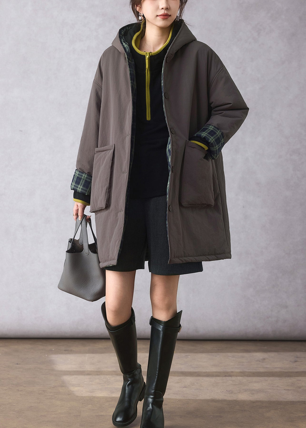 Loose Green Plaid Wear On Both Sides Fine Cotton Filled Hooded Coats Winter