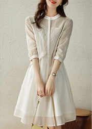 Chic Blue O-Neck Striped Patchwork Fake Two Pieces Button Long Dress Summer