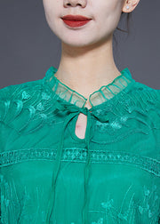 Fine Green Embroideried Hollow Out Tulle Holiday Dress Half Sleeve