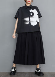 Plus Size Black Peter Pan Collar Print Cotton Shirt Tops Summer