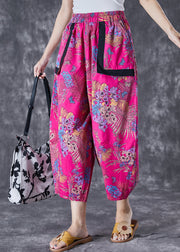 French Rose Print Patchwork Pockets Cotton Harem Pants Summer