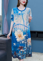Style Blue O Neck Print Patchwork Chiffon Dresses Summer