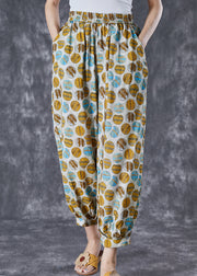 Chic Yellow Oversized Print Pockets Linen Silk Pants Summer