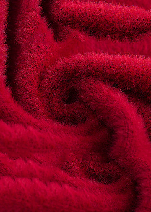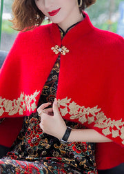 Classy Red Stand Collar Embroideried Patchwork Mink Velvet Coats Fall