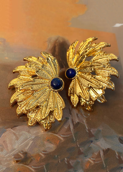 Women Yellow Copper Overgild Inlaid Gem Stone Stud Earrings