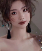 Handmad Black Sterling Silver Tassel Drop Earrings