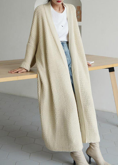 Classy Beige V Neck Cozy Knit Long Cardigans Spring