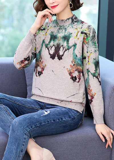 Beautiful Beige Nail Bead Patchwork Cotton Knit Sweaters Long Sleeve