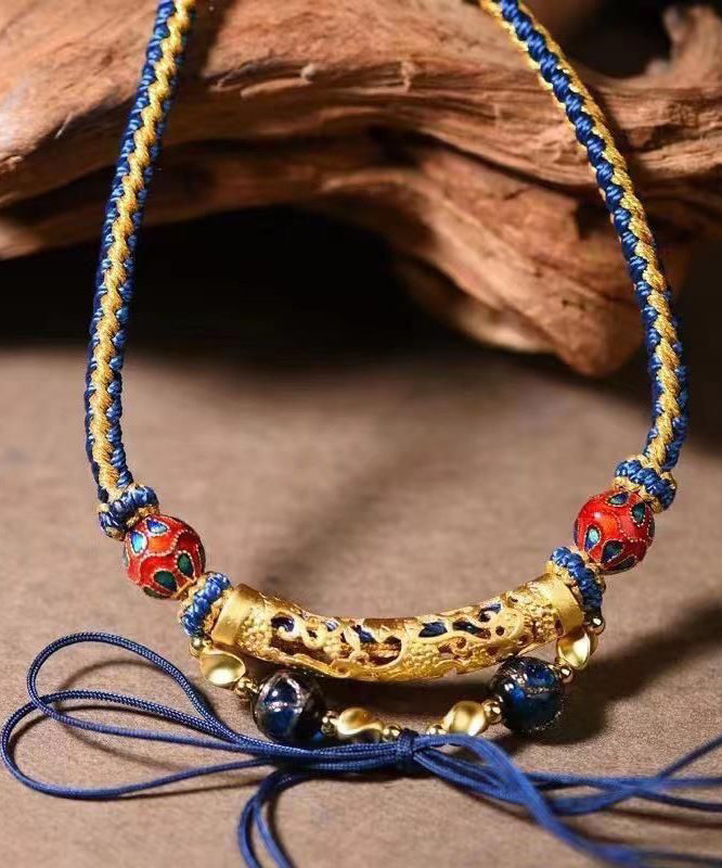 Original Design Colorblock Sterling Silver Overgild Beeswax Roundel Pendant Necklace