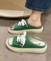 New Summer Stylish Green Lace up Canvas Slide Sandals