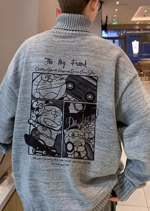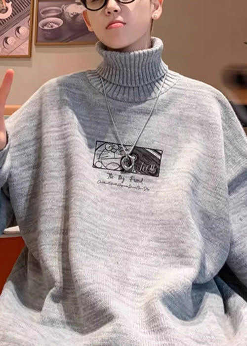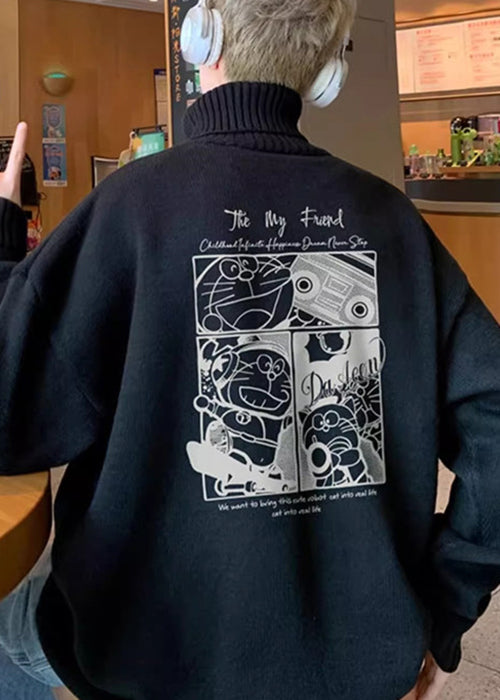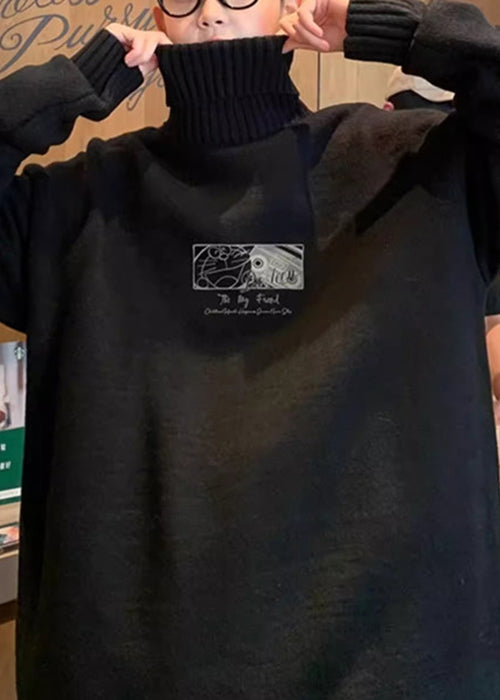 Black Print Thick Knit Mens Sweaters Tops Turtleneck