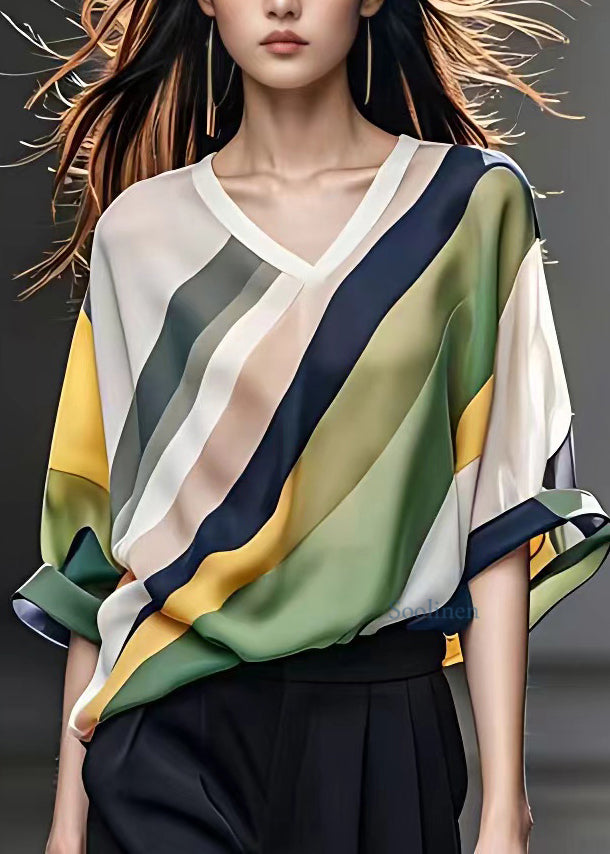 Fashion Colorblock Striped Patchwork T Shirts Summer