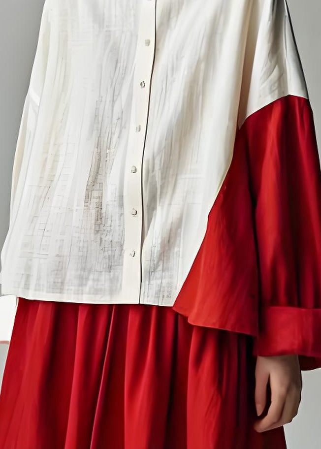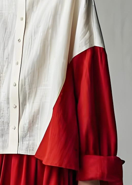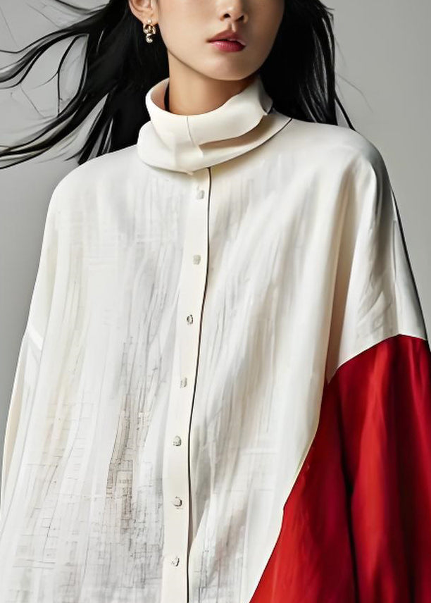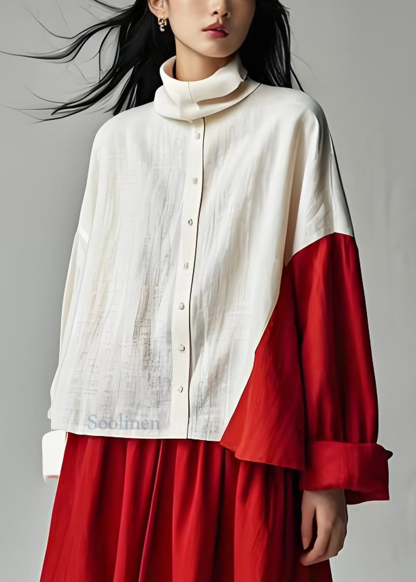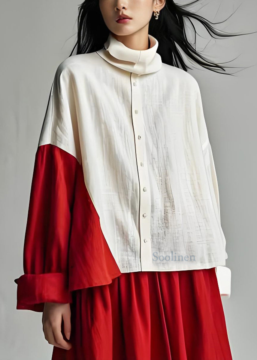 Italian Colorblock Hign Neck Patchwork Cotton Top Long Sleeve