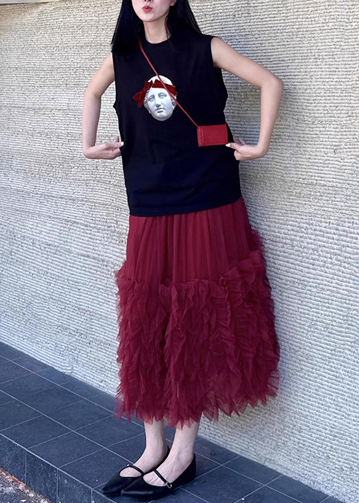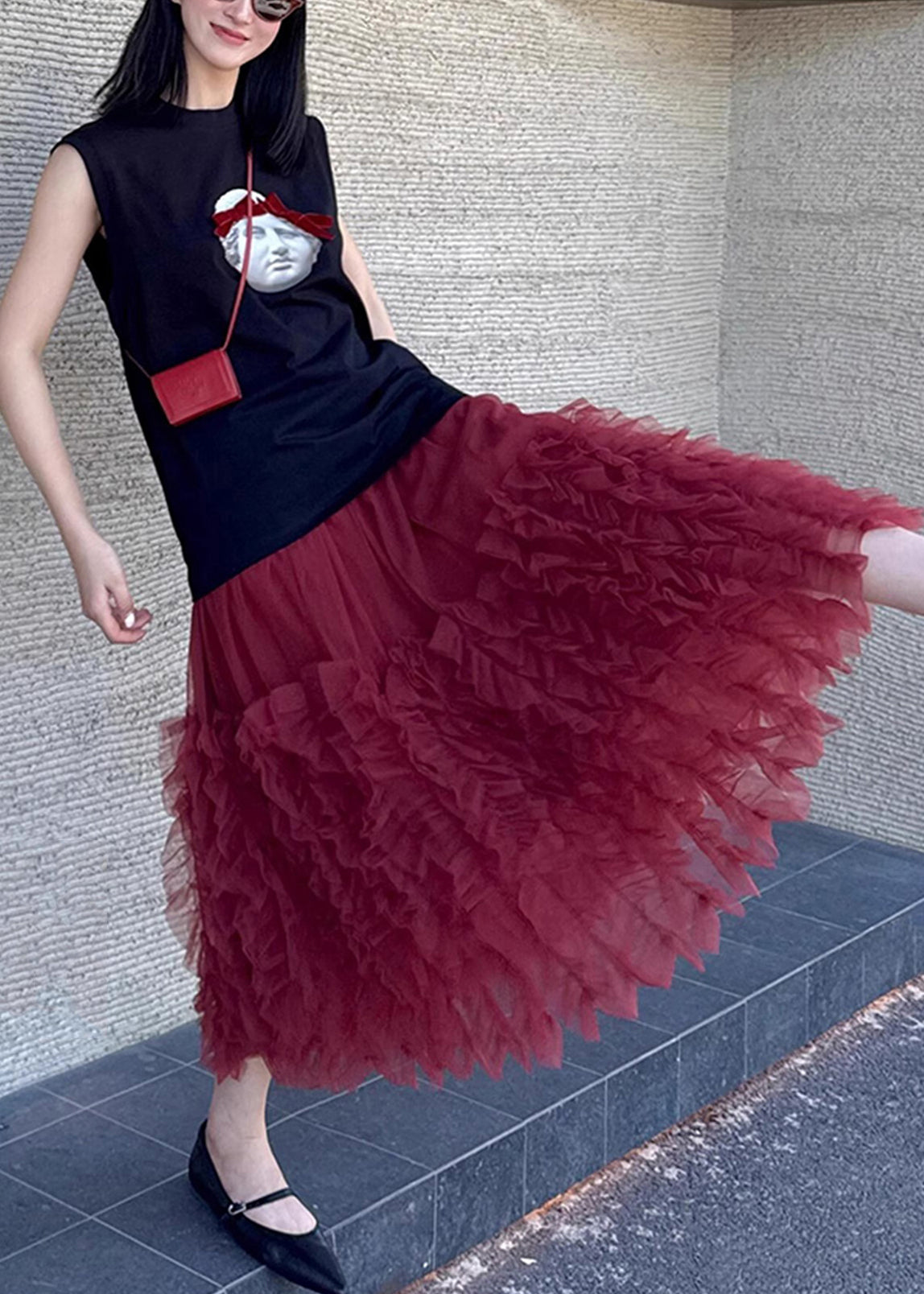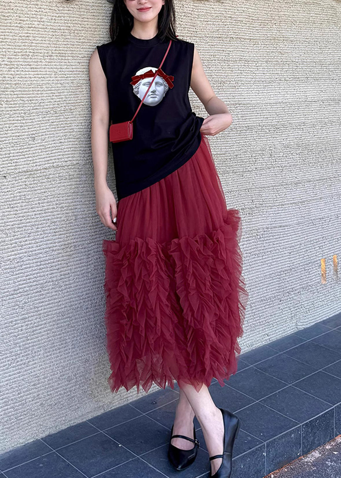 Handmade O-Neck Print Top And Maxi Skirts Two Sets Pieces Summer