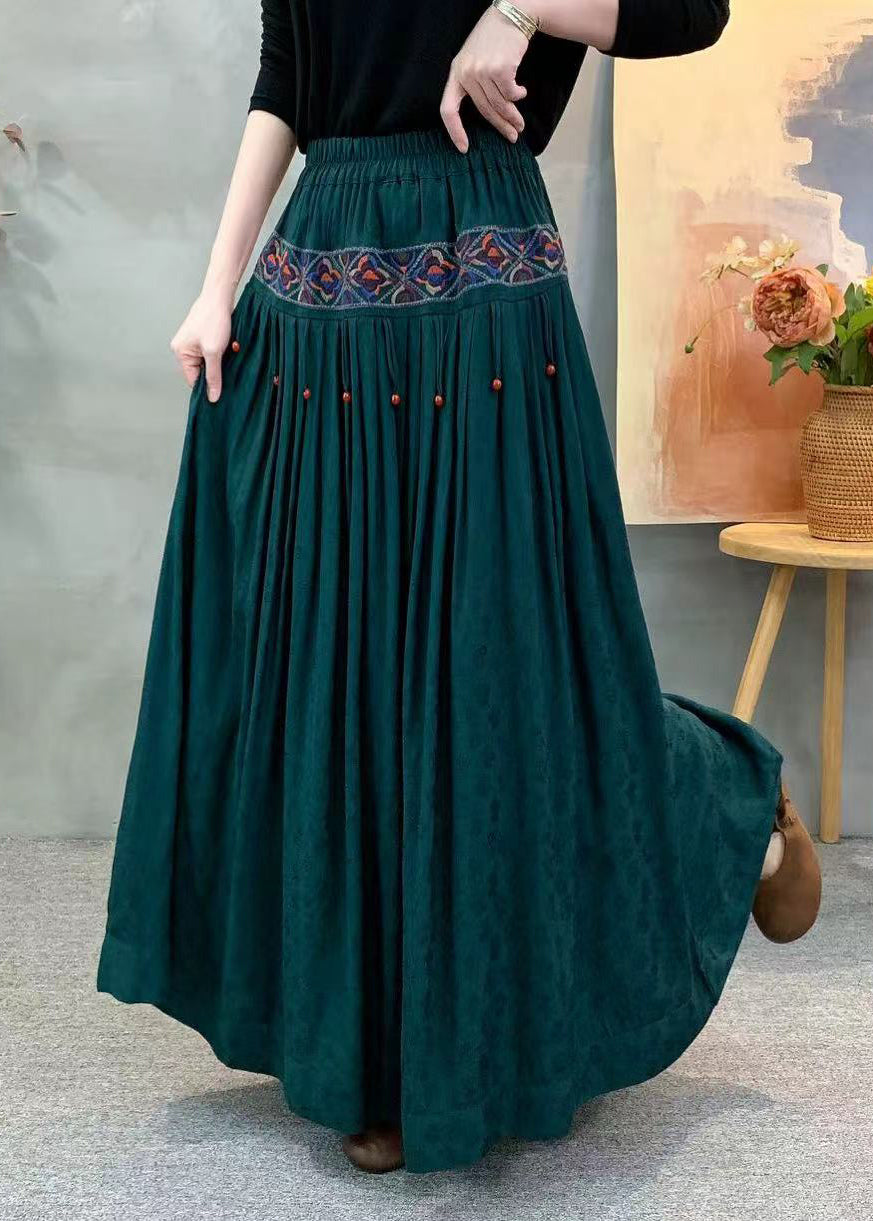 Vintage Red Embroidered Wrinkled Pockets Jacquard Silk Skirt Fall