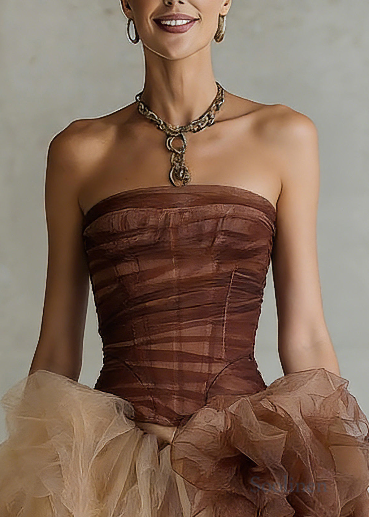 Sexy Brown Cold Shoulder Tulle Patchwork Top And Skirts Two Pieces Set Sleeveless