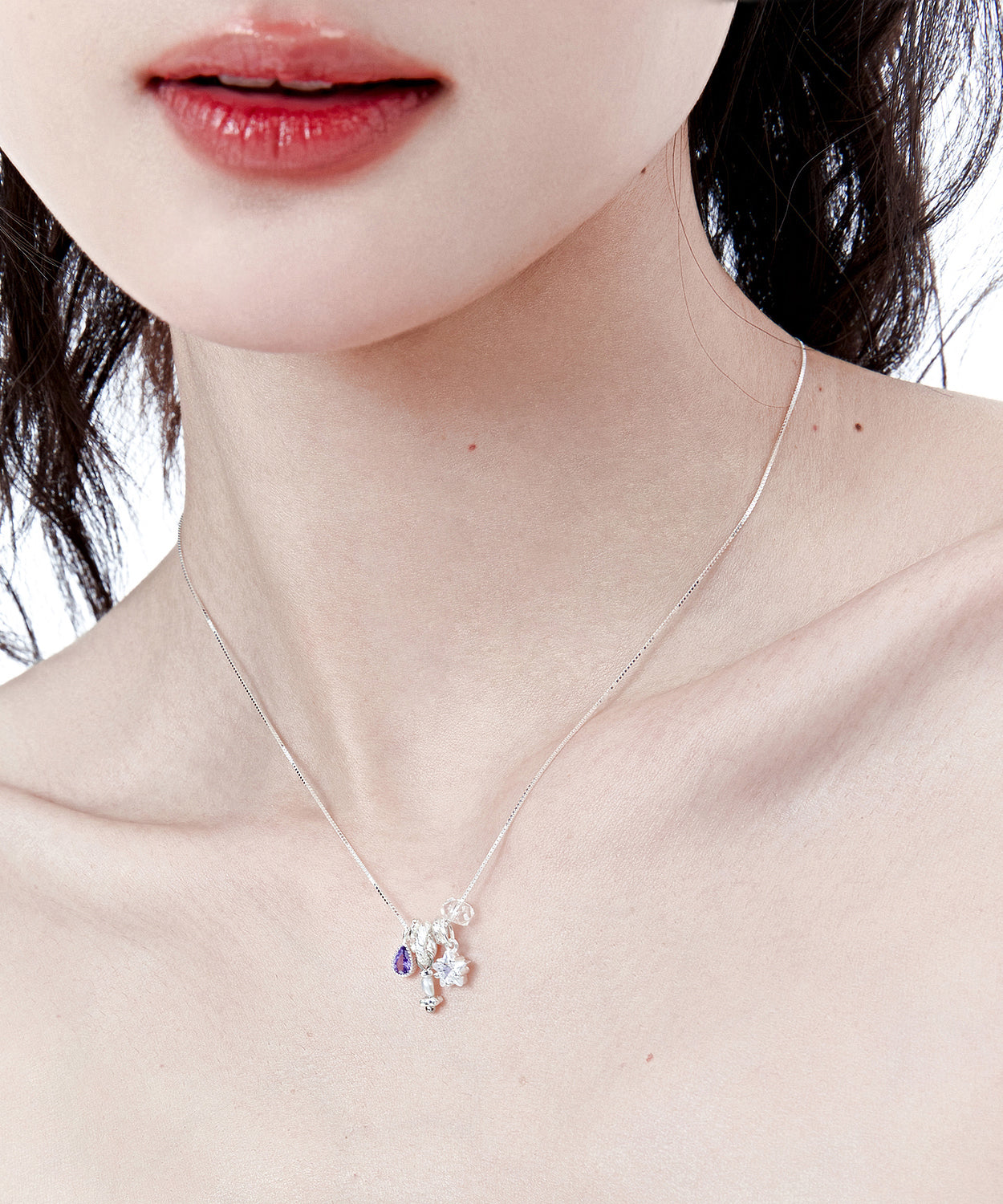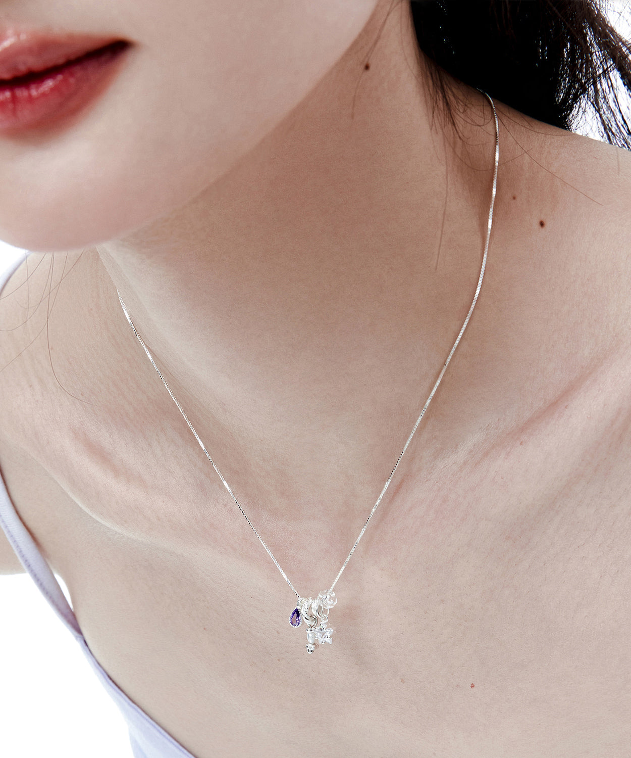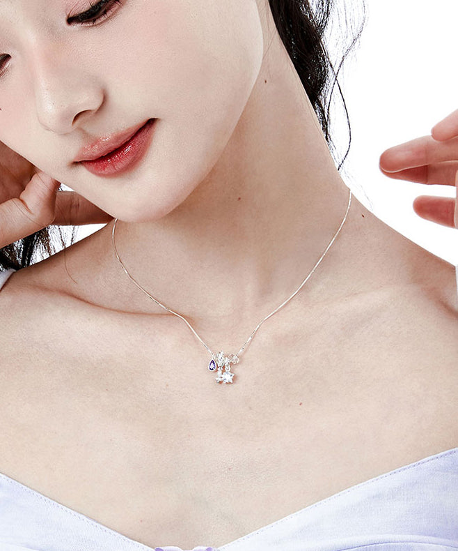 Art Purple Crystal Five Pointed Star Silver Pendant Necklace