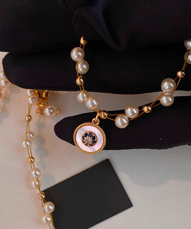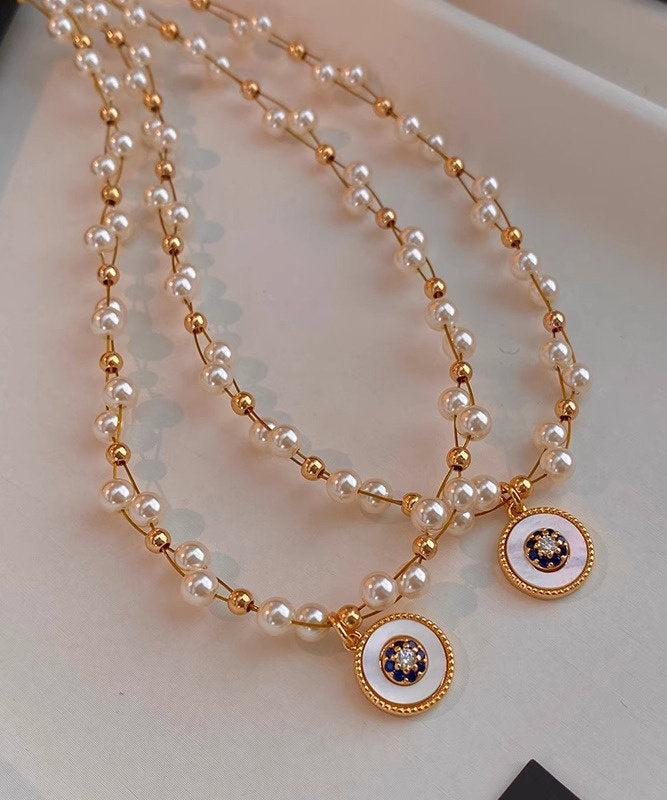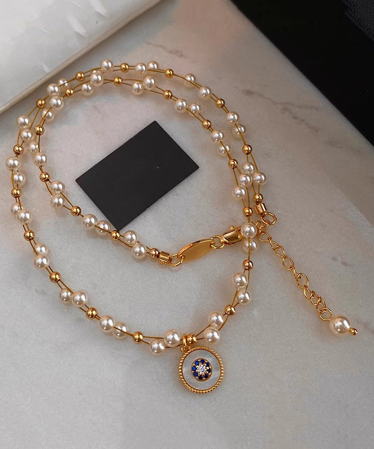 Elegant Pearl Double Layered Gilded Circle Pendant Necklace