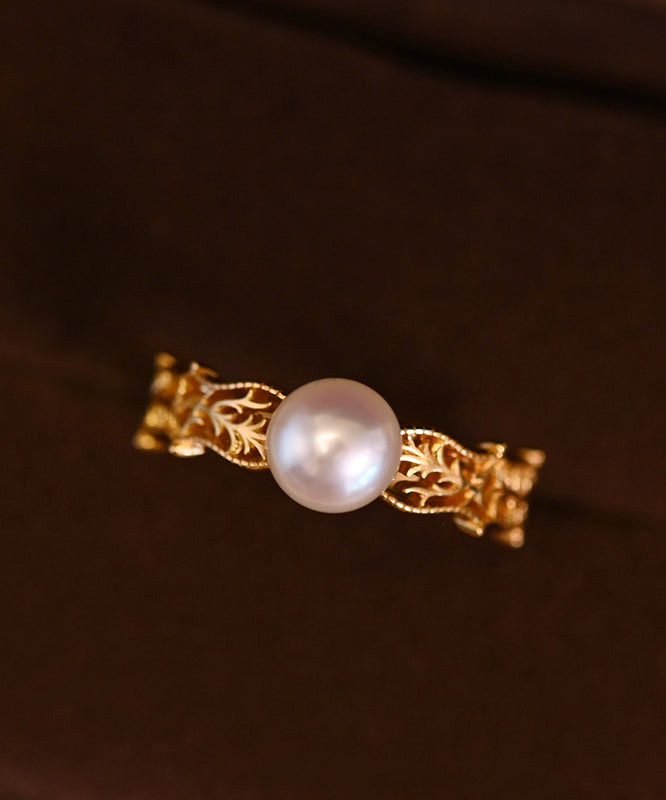 Vintage Pearl Hollow Out Adjustable Gold Plated Rings