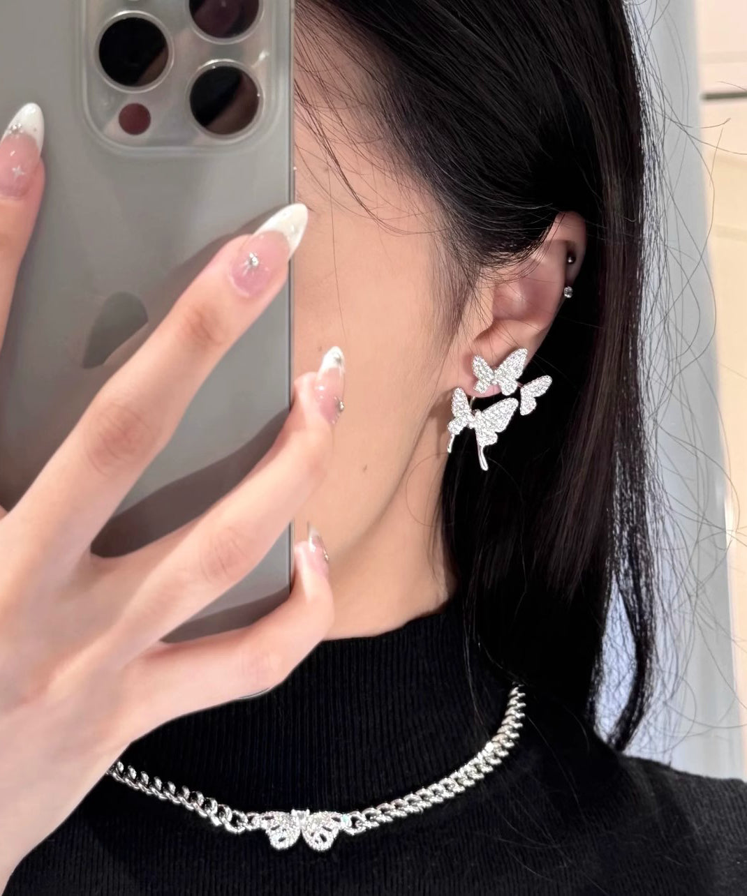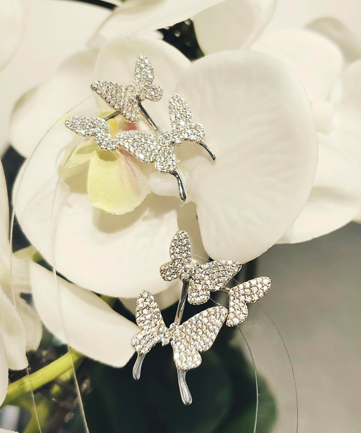 Modern Silk Sterling Silver Zircon Butterfly Stud Earrings