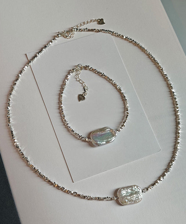 Chic Silver Asymmetric Pearl Adjustable Two Piece Set Pendant Necklace