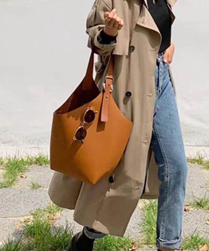 Boutique Brown Large Capacity Faux Leather Bucket Bag