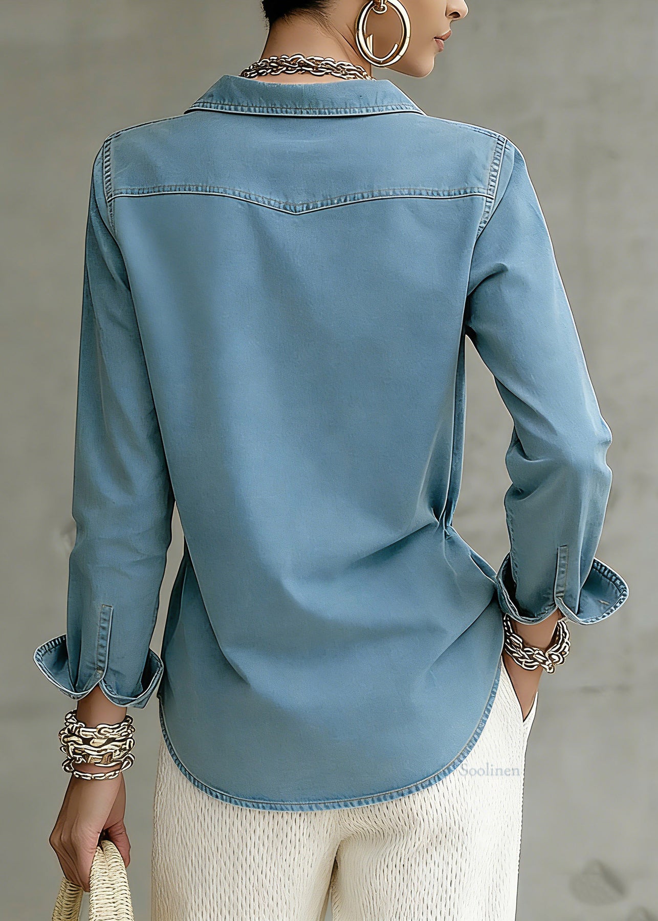 Natural Blue Patchwork Button Denim Top Spring