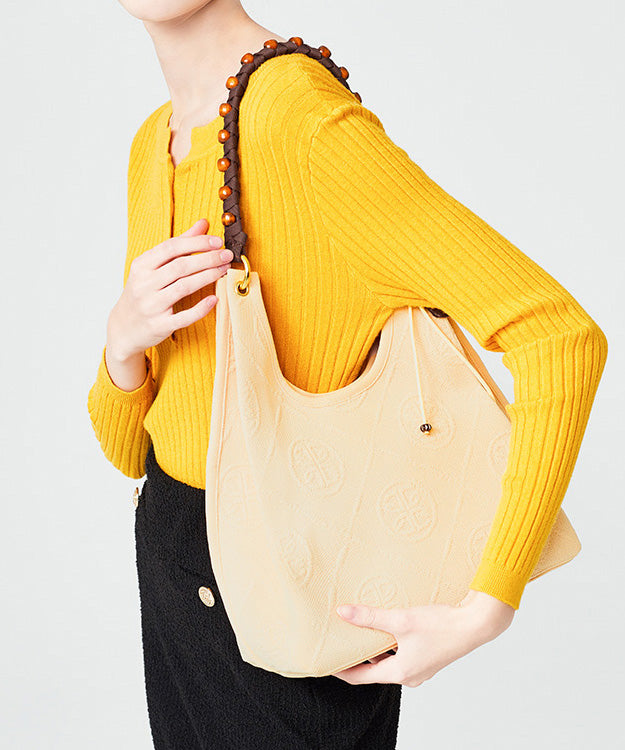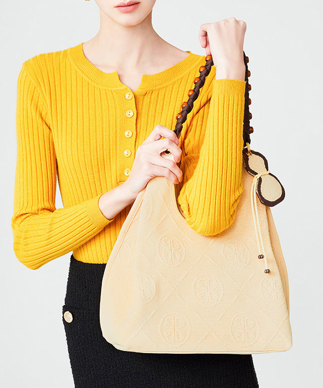 Beautiful Beige Tasseled Embroidered Cotton Women Handbags