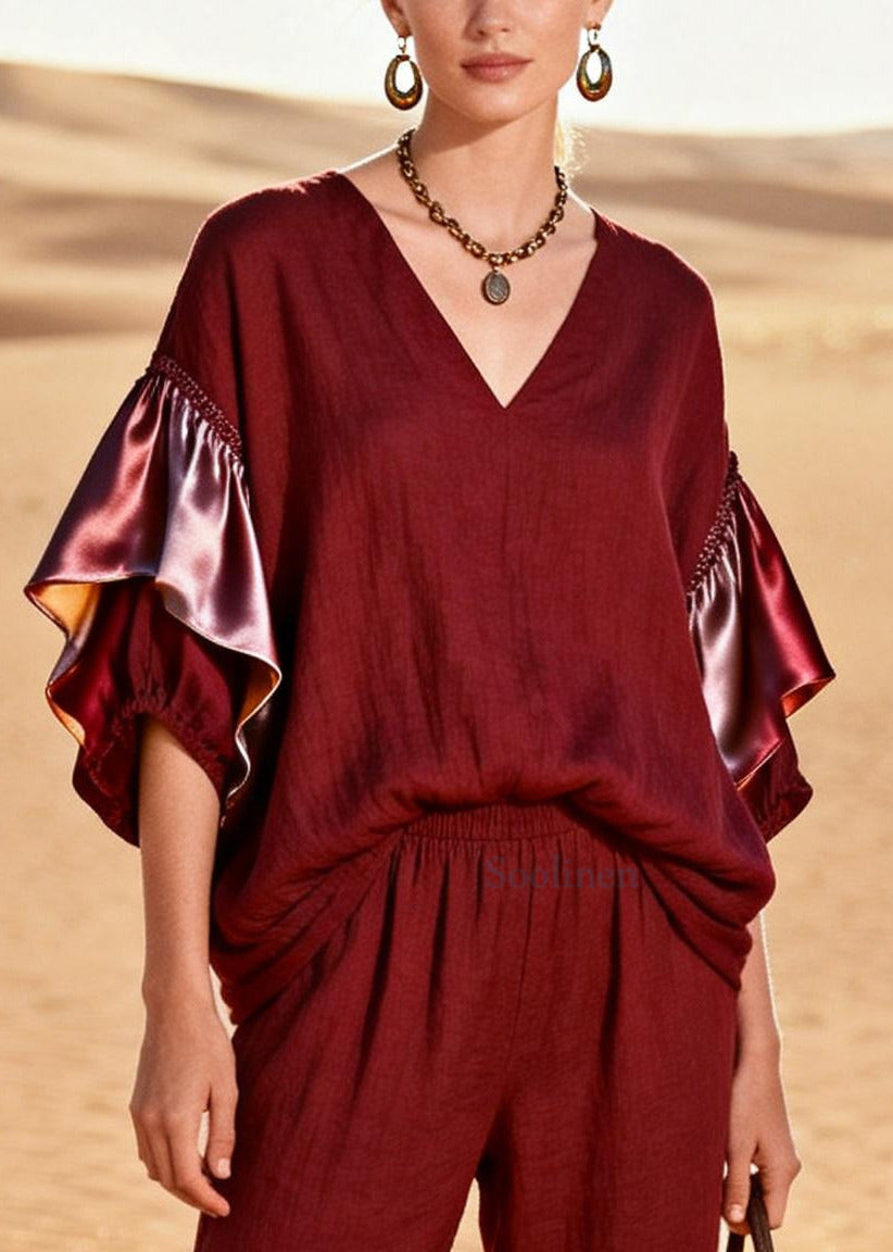 French Mulberry Oversized Patchwork Cotton Two Piece Suit Set Butterfly Sleeve