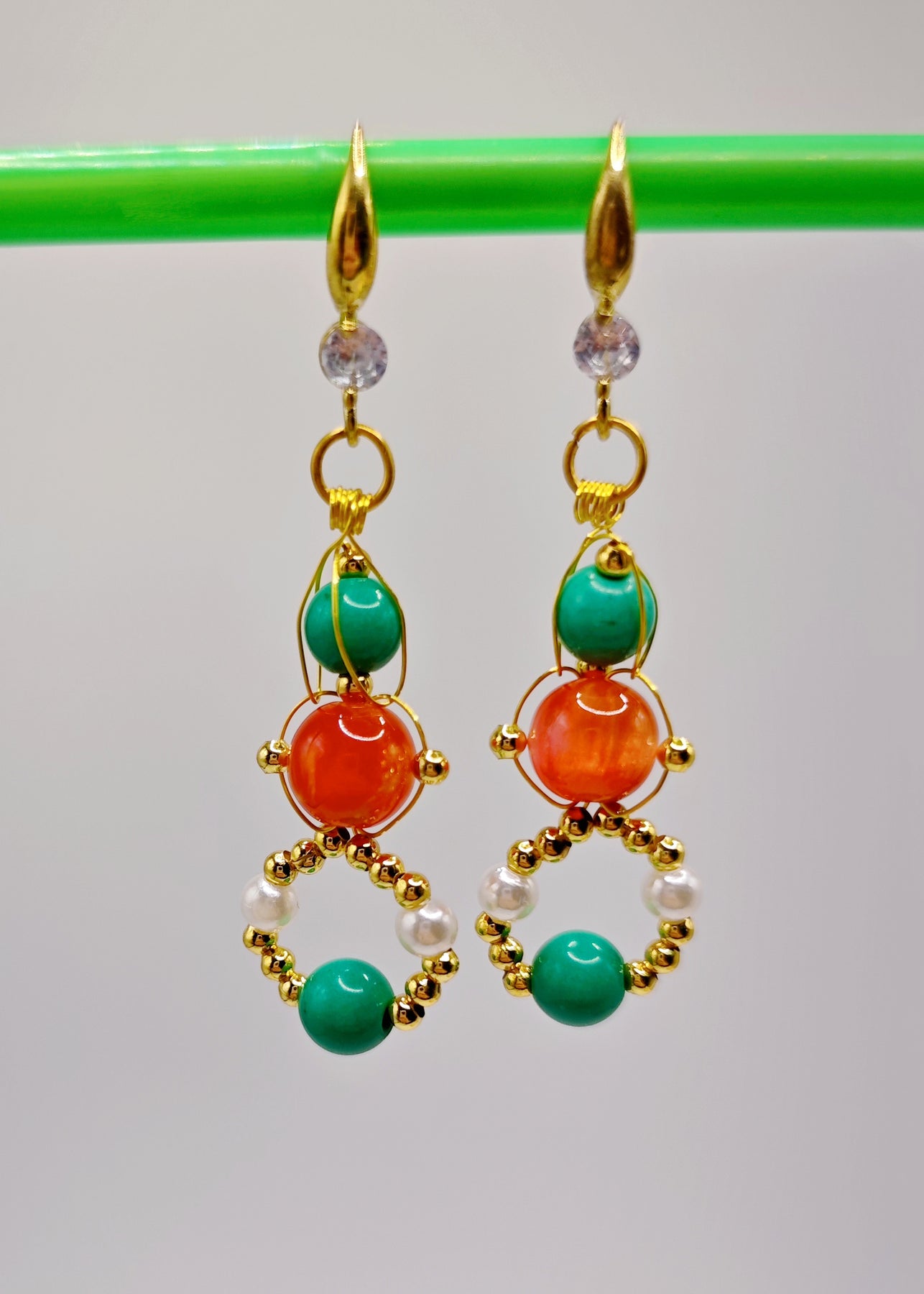 Stylish Orange Crystal And Fine Turquoise Drop Earrings