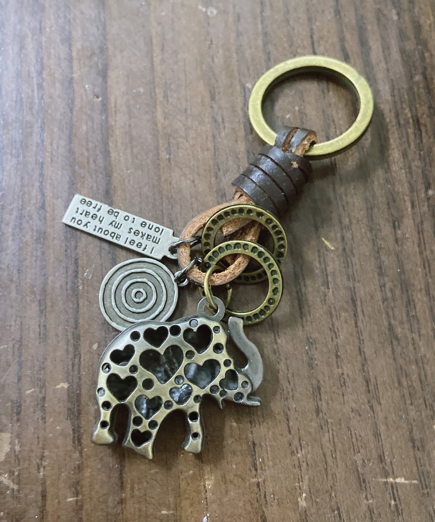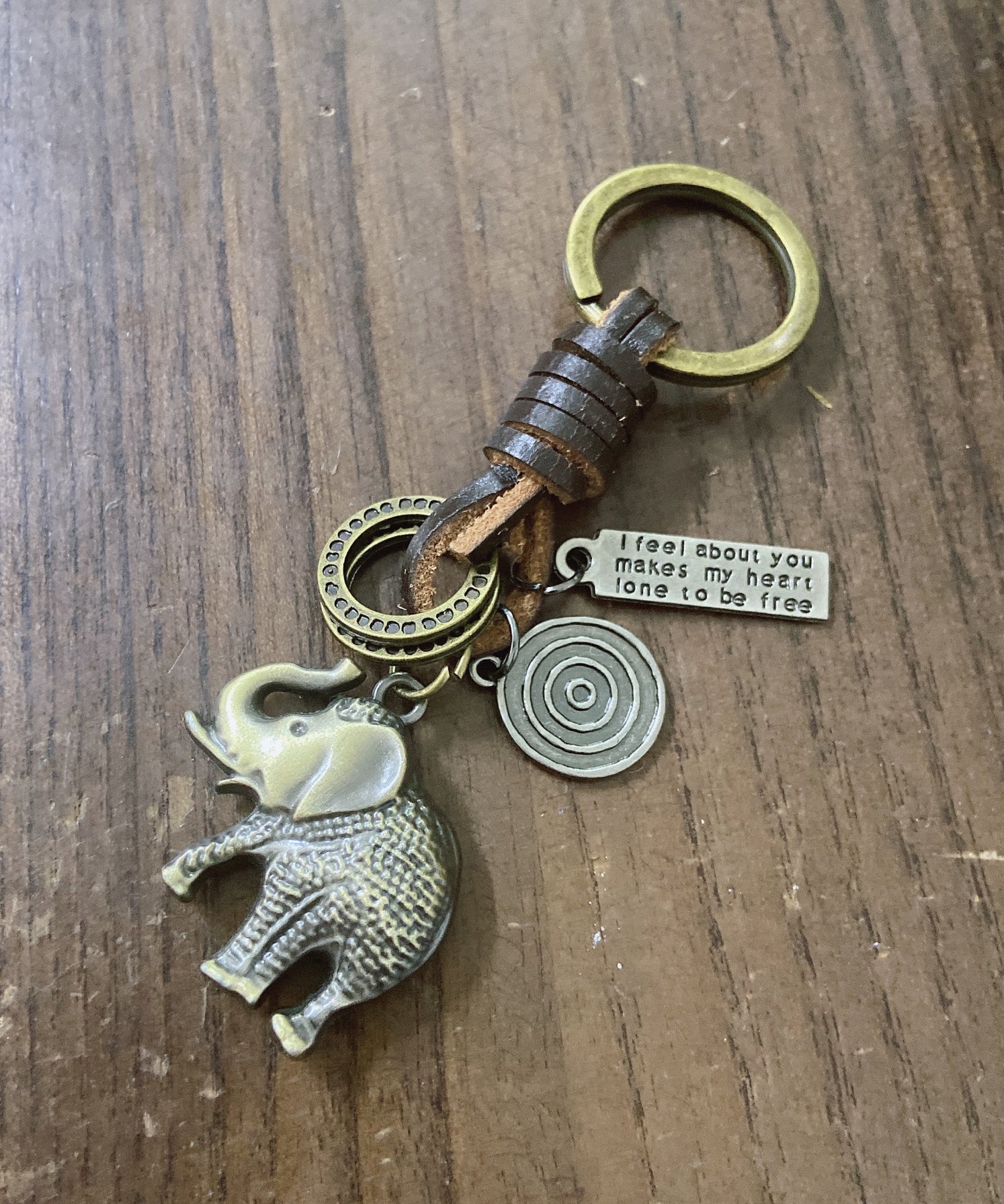 Vintage Hand Woven Cowhide Alloy Little Elephant Keychains