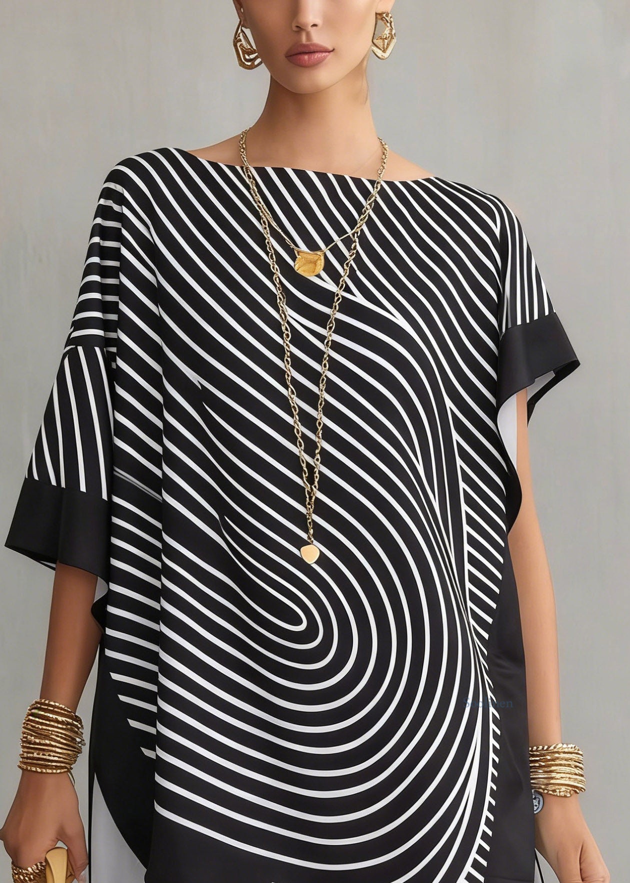 Organic Black Asymmetrical Striped Side Open Tops Summer