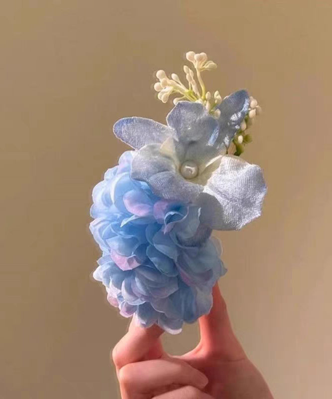 Handmade Blue Alloy Butterfly Floral Pearl Hairpin