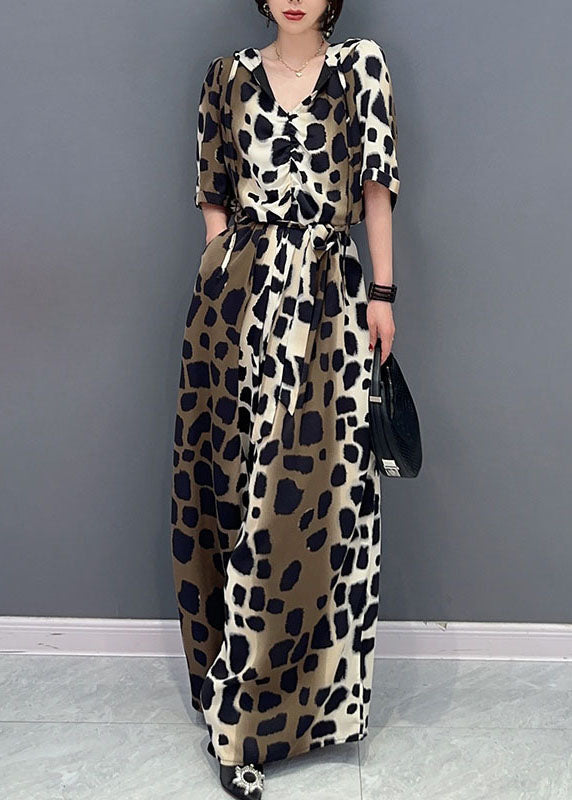Women Colorblock Leopard Pockets Patchwork Cotton Jumpsuit Summer