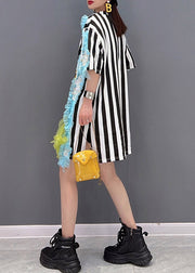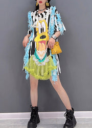 Italian Embroideried Ruffled Cartoon Striped Tulle Patchwork Tops Short Sleeve