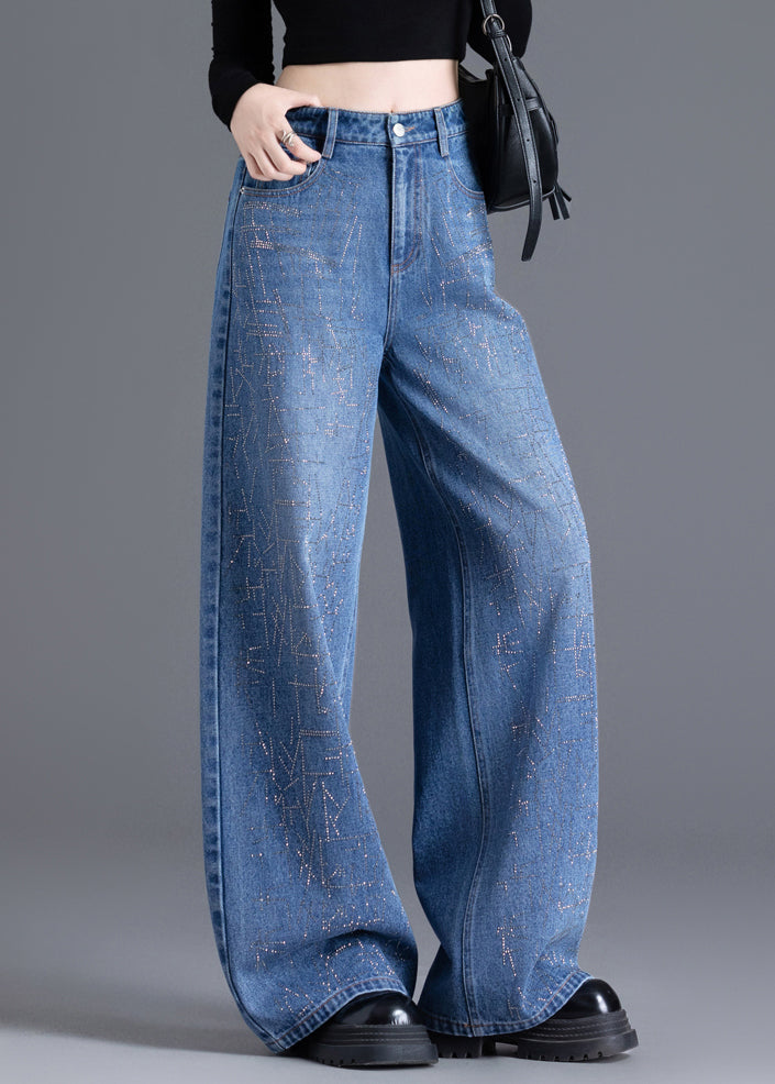 New Blue Pockets Zircon Denim Wide Leg Pants Spring