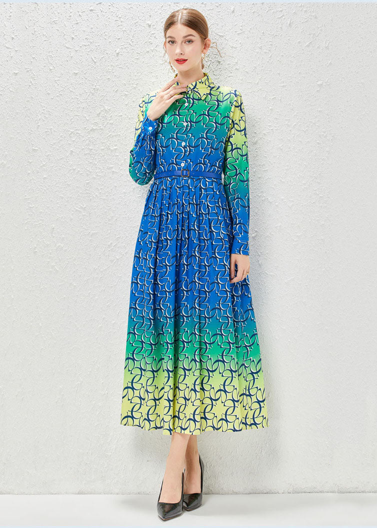 Bohemian Gradient Color Print Patchwork Sashes Chiffon Exra Large Hem Dress Fall