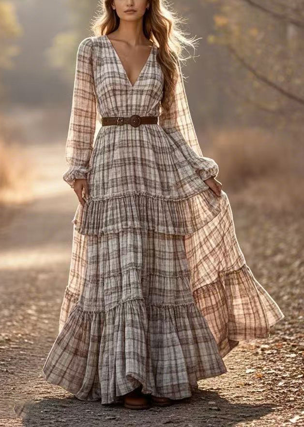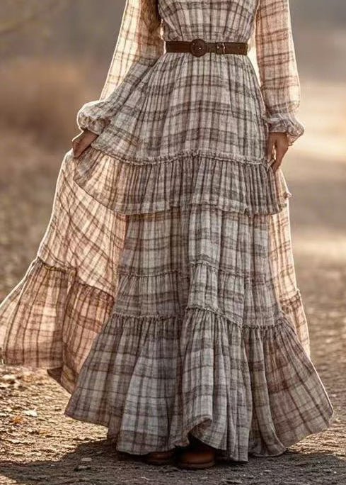 DIY Apricot Cinched Plaid Exra Large Hem Ankle Dress Spring