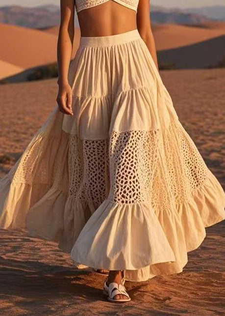 Style White Exra Large Hem Patchwork Hollow Out Holiday Skirts Spring