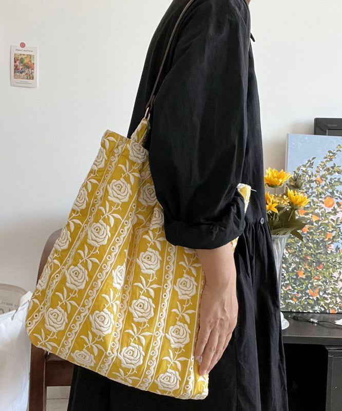 DIY Yellow Embroidered Flower Canvas Shoulder Bags