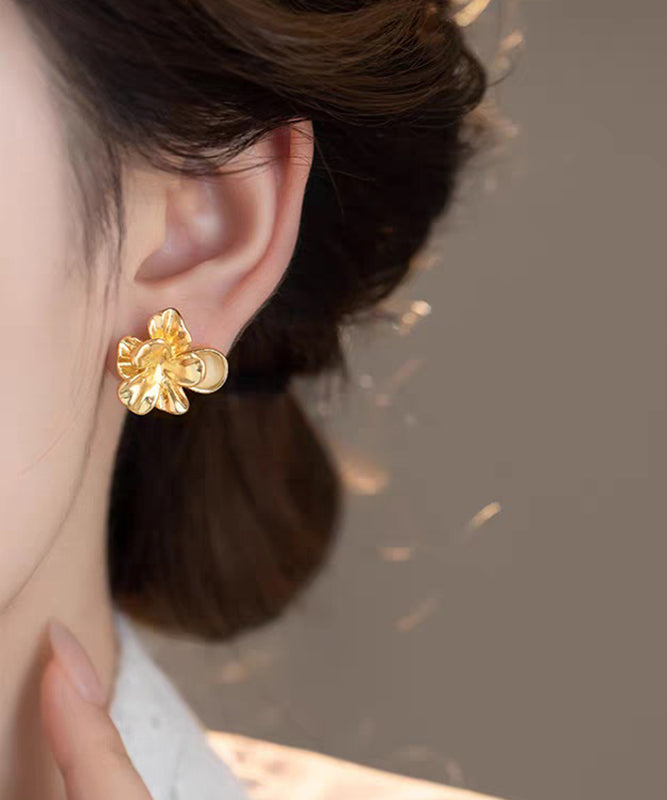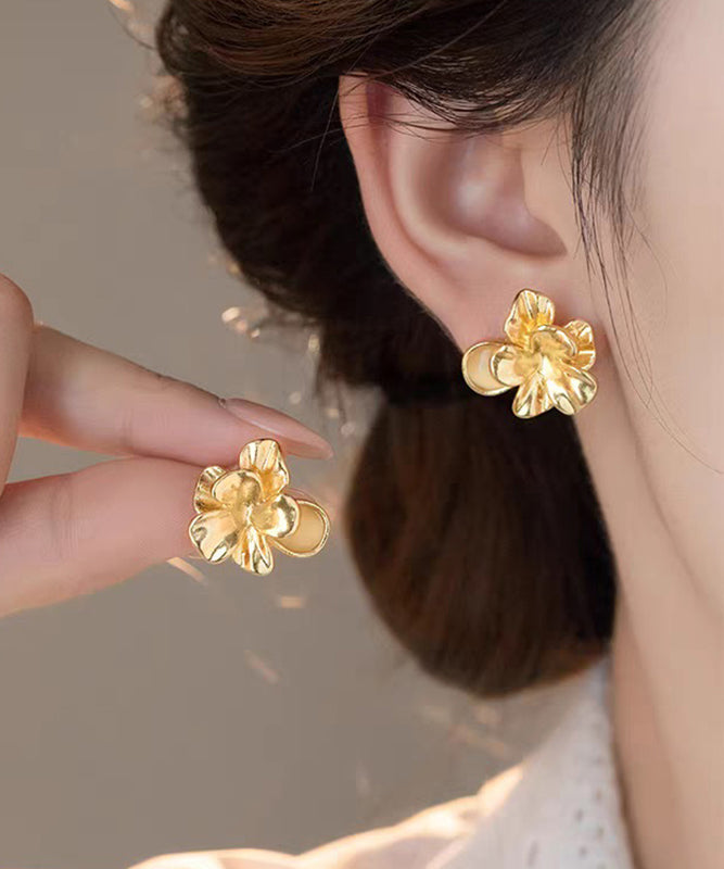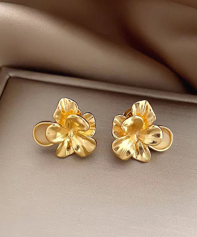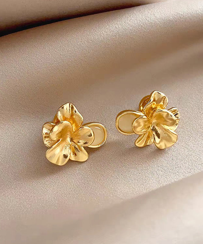 Fashion Gold Metal Alloy Floral Cat's Eye Stud Earrings