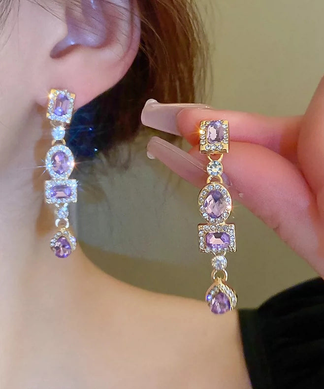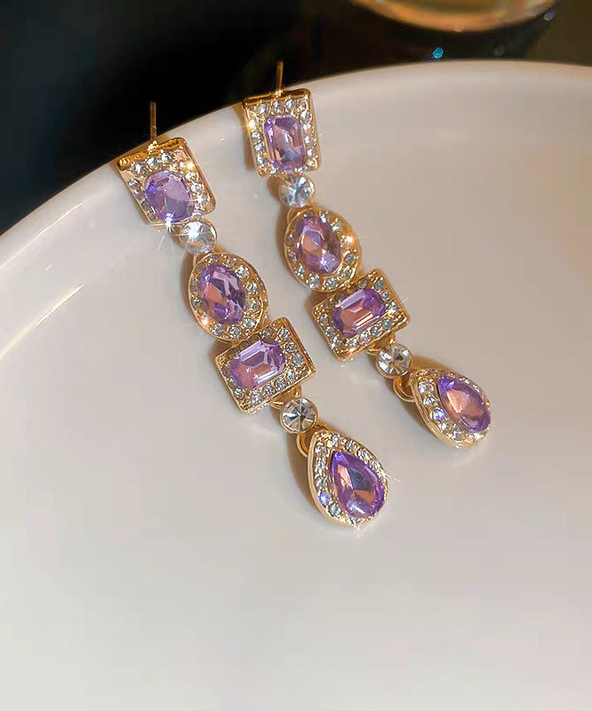 Style Purple Alloy Zircon Water Drople Drop Earrings