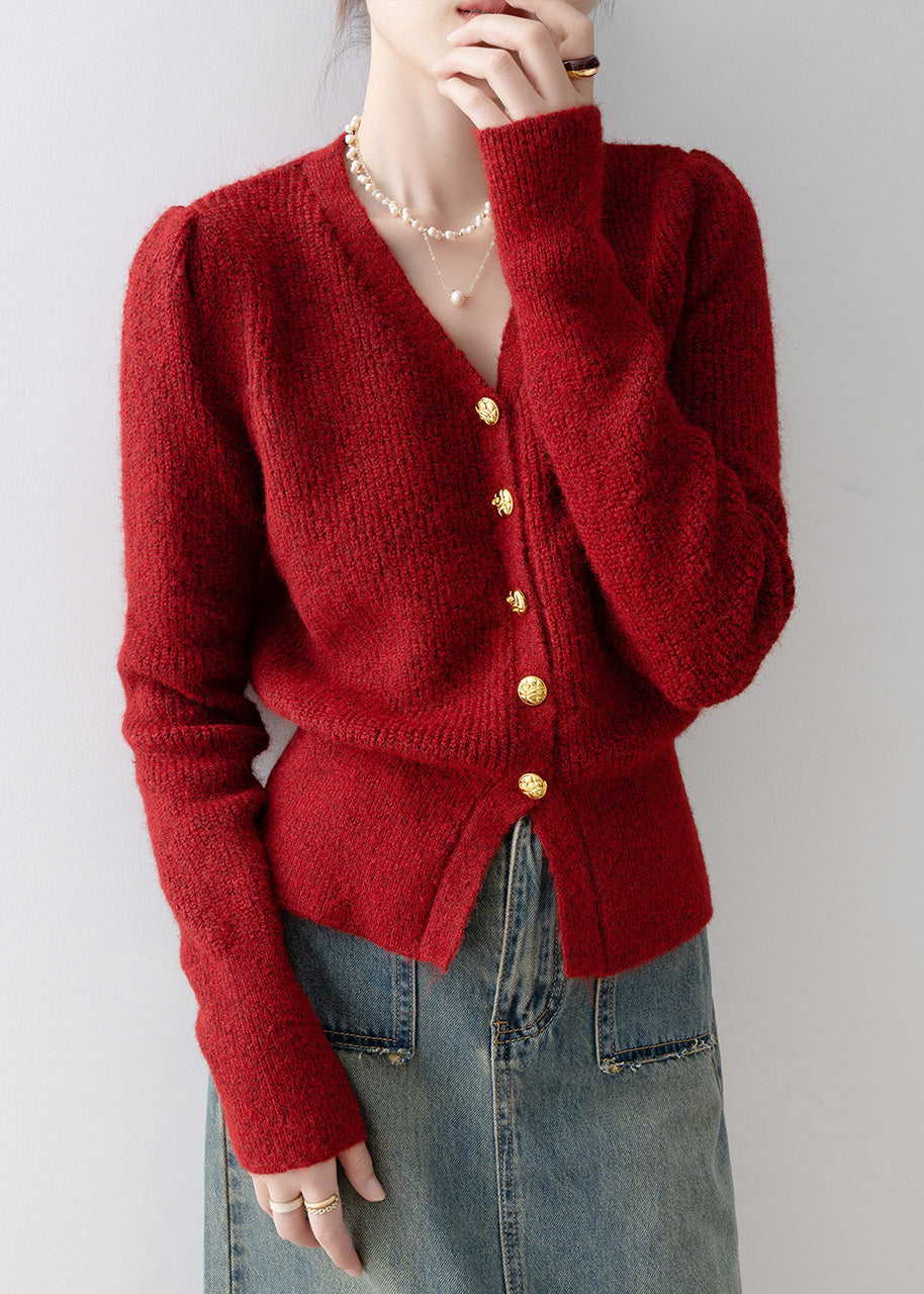 Women Mulberry V Neck Silm Fit Knit Cardigans Winter