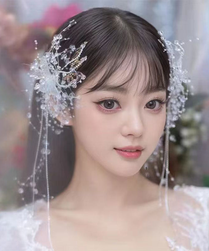 New White Acrylic Alloy Crystal Butterfly Tassel A Pair Hairpin