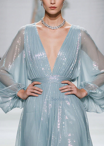 Sea Blue Tulle Mini Dresses Sequins Sheer Summer