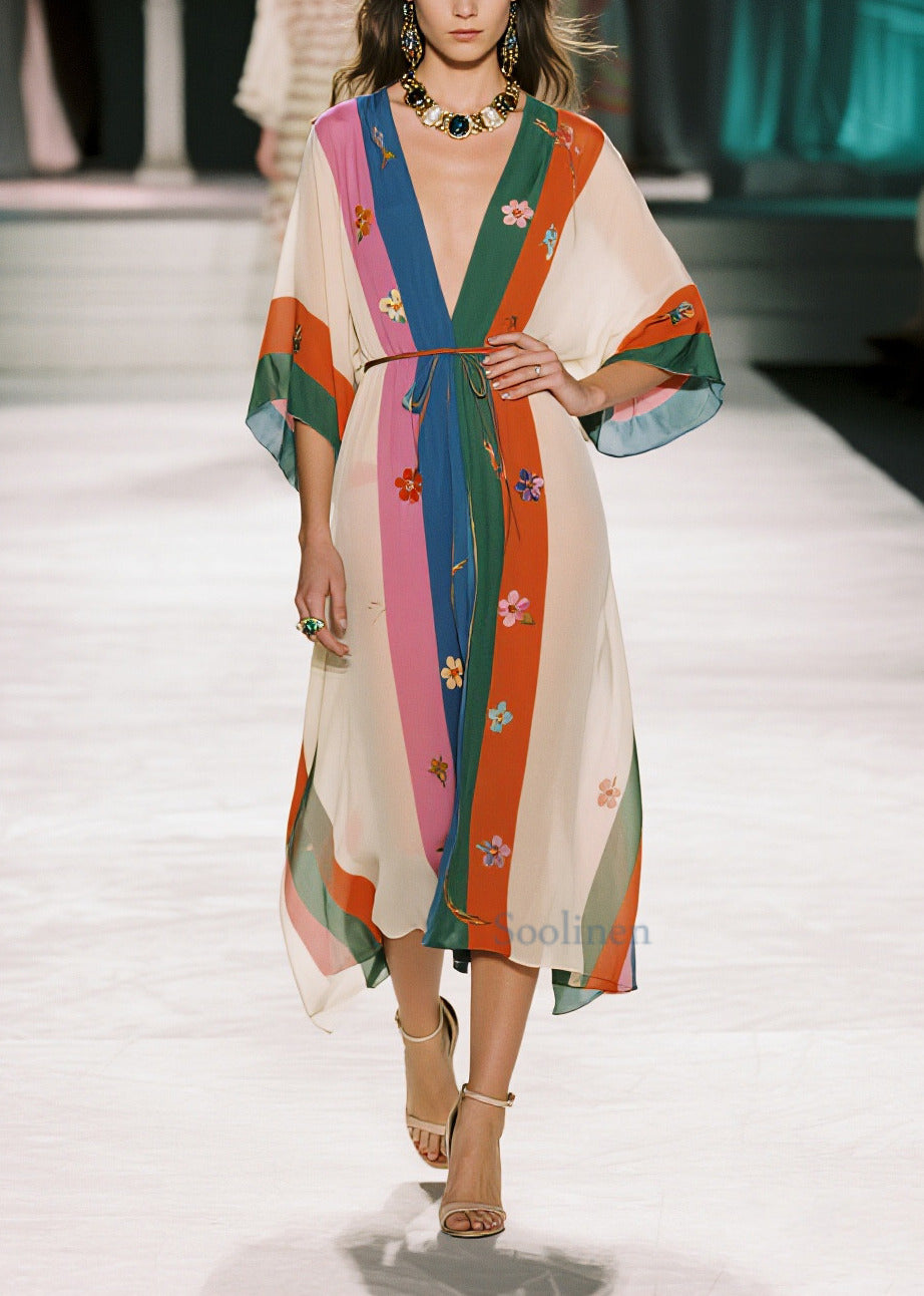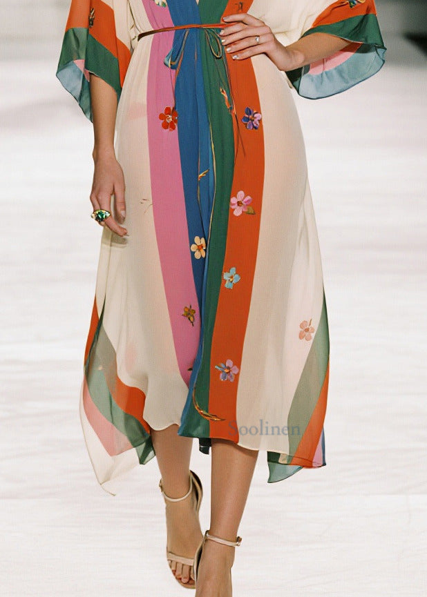 Style Colorblock Floral Print Draping Chiffon Robe Dresses Summer
