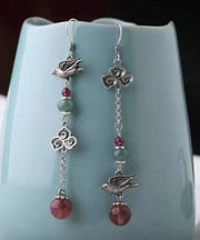 Vintage Sterling Silver Crystal Birds Over The Clouds Magpie Drop Earrings