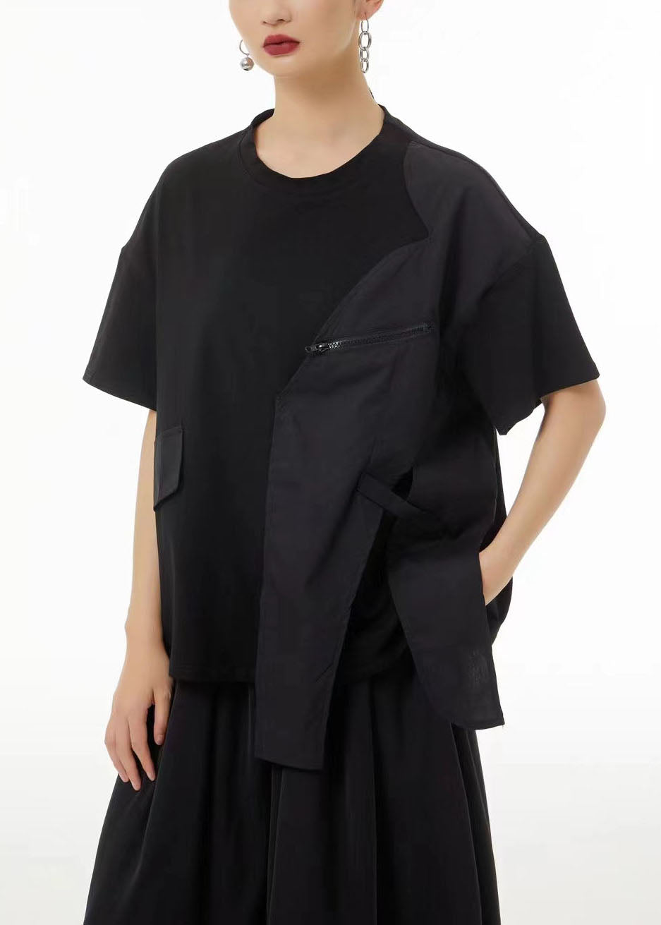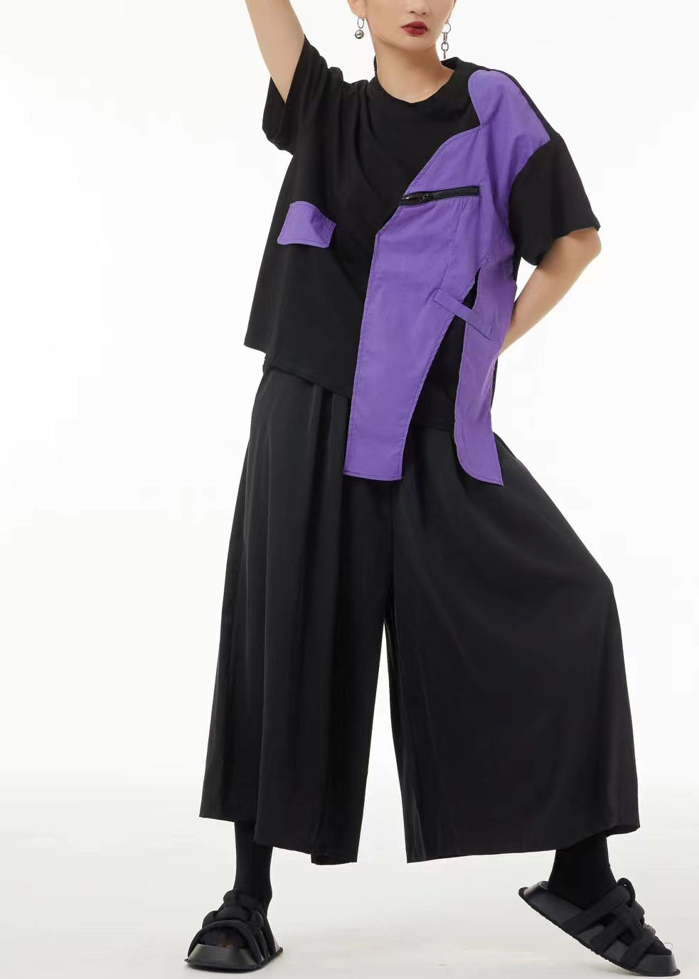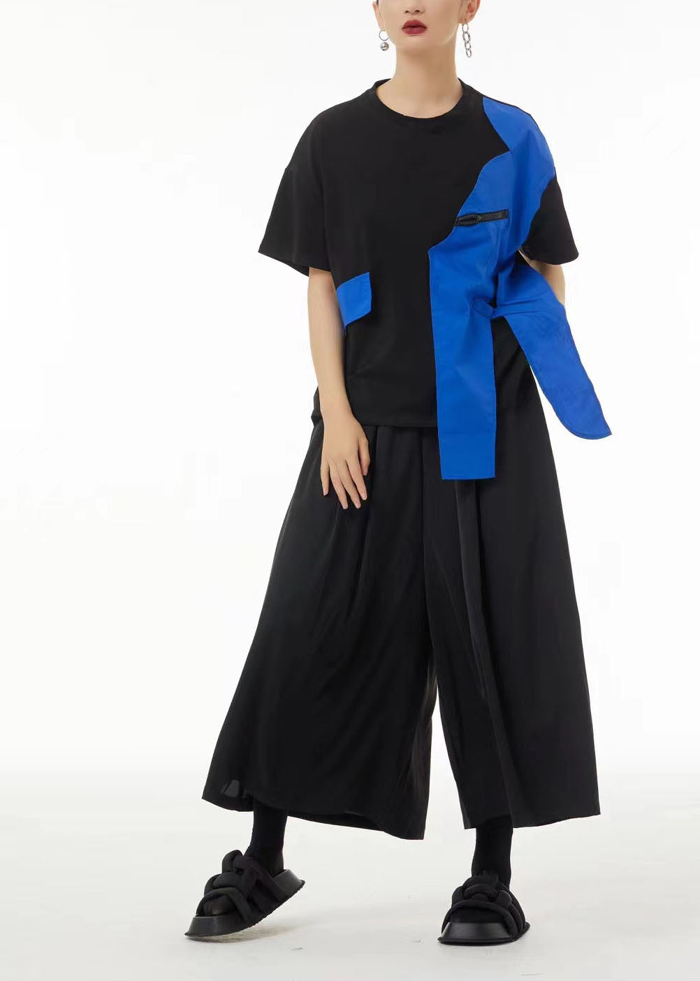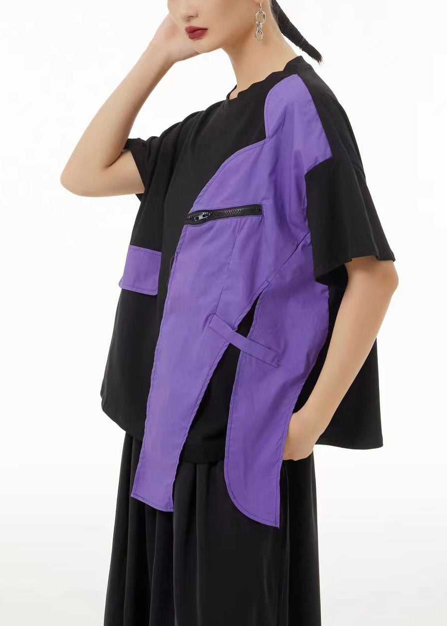 Art Colorblock Asymmetrical Patchwork Cotton Tanks Summer