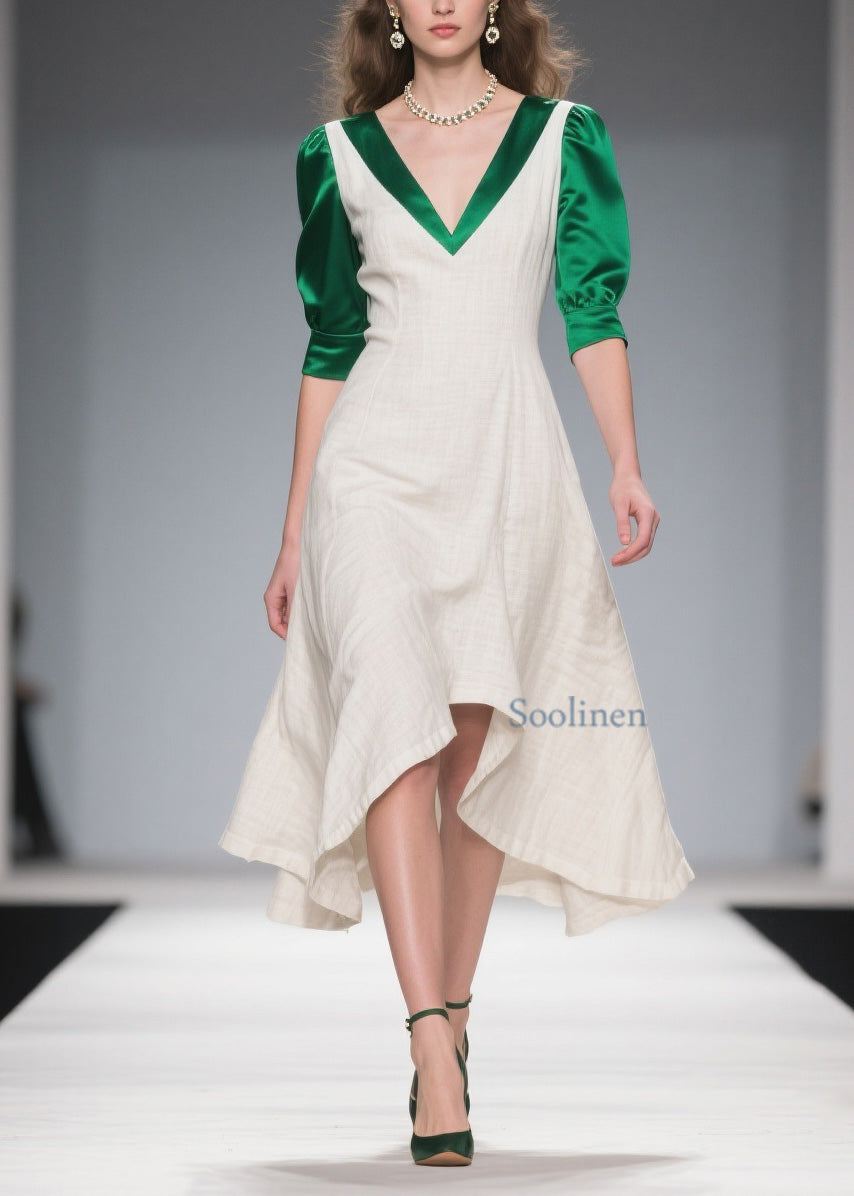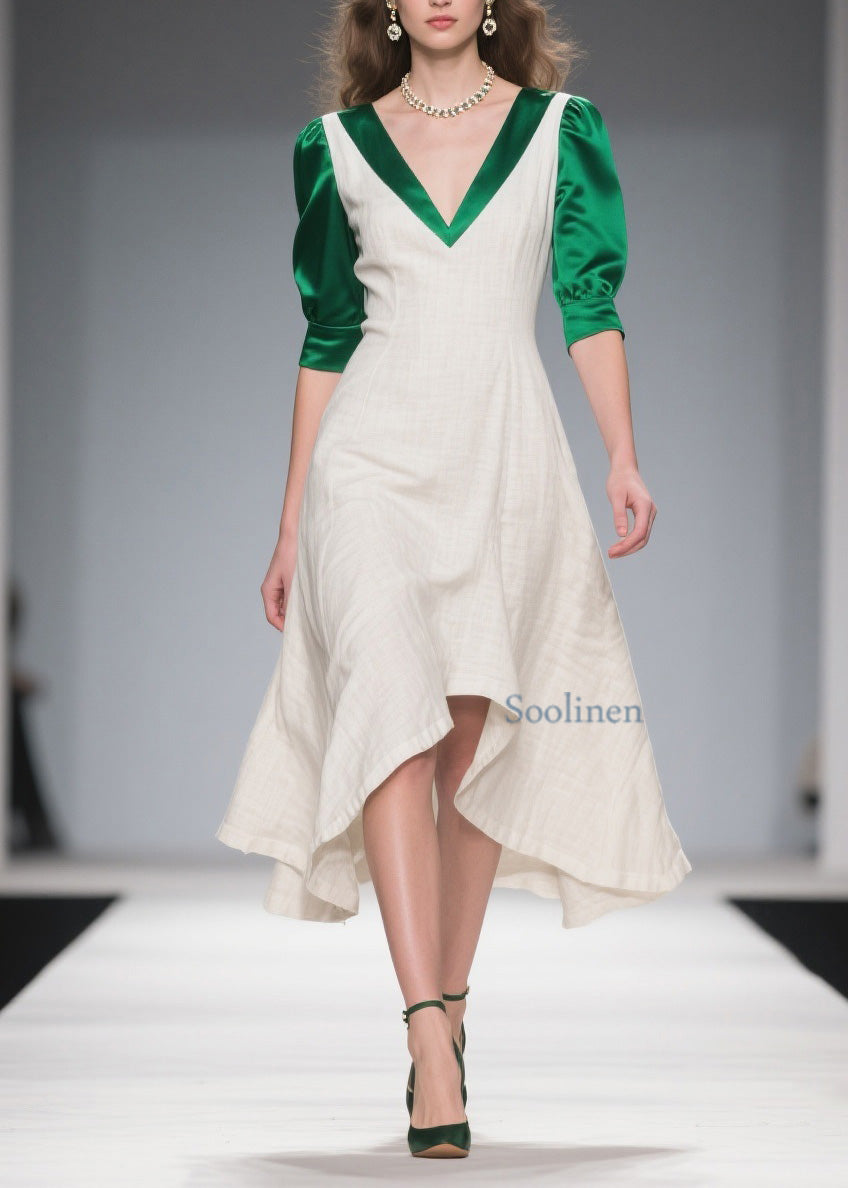 Classy Colorblock Asymmetrical Patchwork Linen Silk Dress Summer