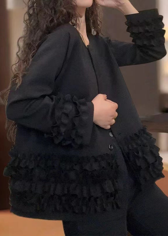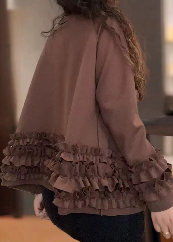 Boho Red Ruffled Oversized Cotton Coats Fall